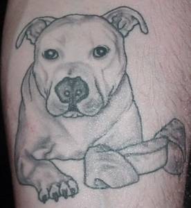 As you can see from the pictures above, not all dog tattoos are cute and sweet looking, in fact many folks prefer to portray their dog in a growling or striking motion. I suppose this would depend on the breed and temperament of the dog.